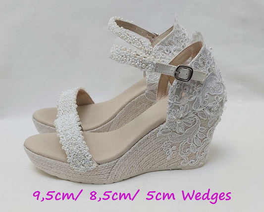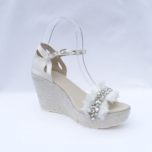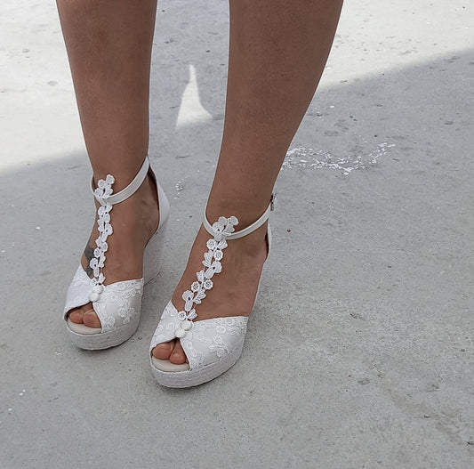 Sandales compensées de mariée, Sandales pour mariage à la plage, Sandales de mariée, Sandales de mariage compensées