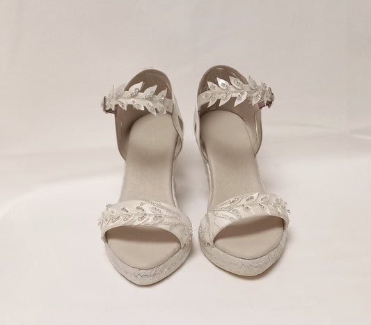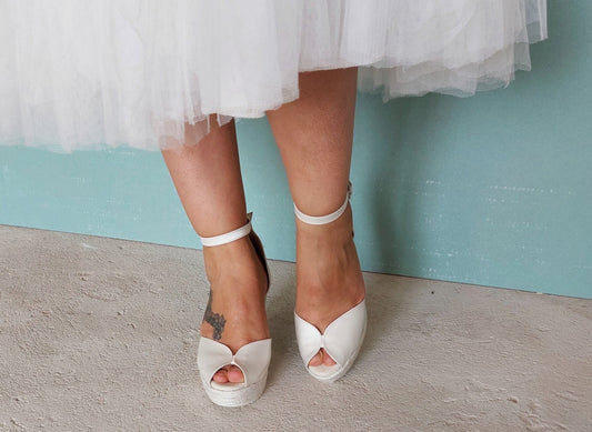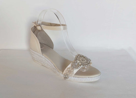 Sandales de mariée, compensées de mariée, sandales de mariée à petits talons, chaussures de mariée à petits talons, sandales compensées pour mariage, espadrilles de mariée