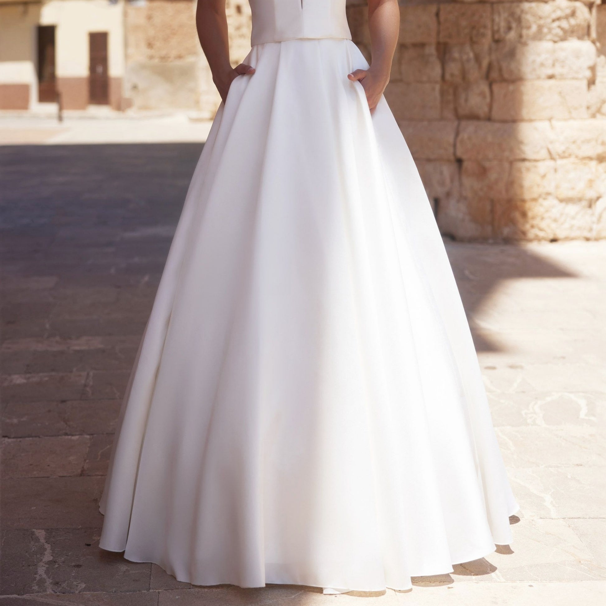 Create a stunning and versatile bridal look with our Bridal Separates Skirt Reese. Made with luxurious mikado fabric, this skirt can be worn with or without a hoop petticoat for a voluminous or natural effect. Pair it with one of our mikado corsets for an elegant look or a lace top for a romantic touch.