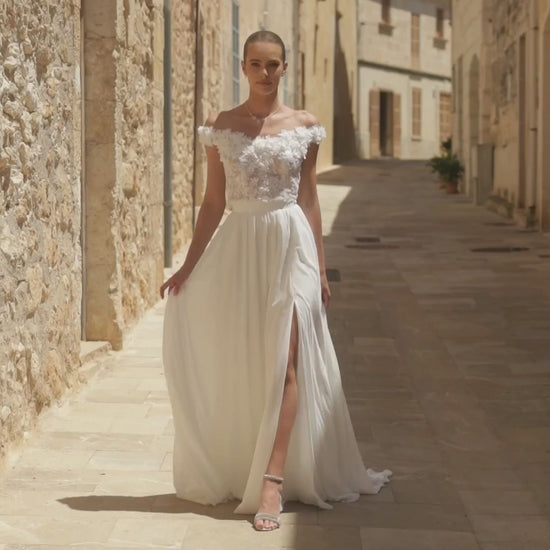 If you want to complete your look, you can buy our beautiful and elegant bridal shoes Karen